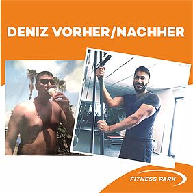 Auch ohne Eis und mit 11kg weniger voll zufrieden! Deniz trainiert alle zwei Tage an den Geräten und im Freihantelbereich. Mt Disziplin und der passenden Ernährungsumstellung hat er einen beeindruckenden Wandel geschafft - herzlichen Glückwunsch und weiter so.